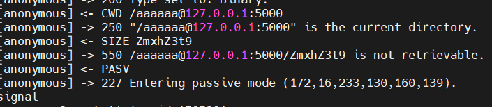 因为bbb@ccc会被识别为目录,所以我们要提前创建一个aaaaaa@127.0.0.1:5000目录,在服务器上我们还需要开启对应的端口(我这里用的默认21)和ftp被动模式的端口。